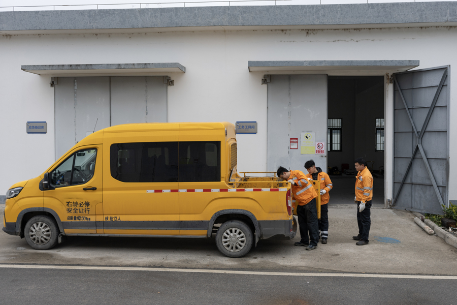 袁浩和工友们在上海嘉定辖区功课时的留影。