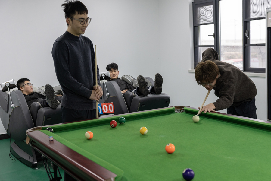 太仓高铁维修工区寝室楼,年青的高铁露馅工优游之余沿途打桌球,由于使命的特殊性,他们长久居住在集体寝室中,有不少工友来自内蒙古和东北等地。